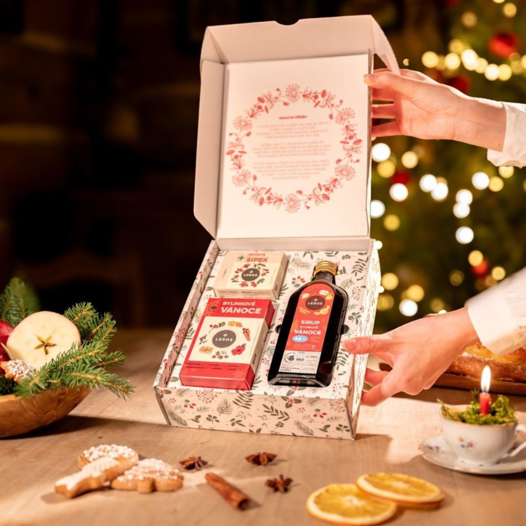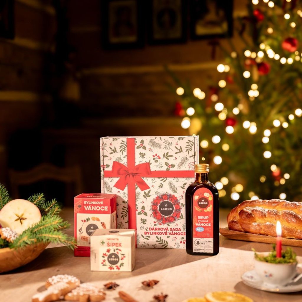 LEROS Dárková sada je pečlivě připravená kombinace přírodních lahůdek, která přinese kouzlo Vánoc k vám domů. V elegantní papírové kazetě vás potěší voňavá vánoční atmosféra v podobě bylinného sirupu, ideálního k dochucení čaje, svařeného vína nebo domácího cukroví. Tento sirup se skládá z mandarinkové a kdoulové šťávy spolu s kořením jako skořice či kardamom. Dárková sada obsahuje také dva druhy čajů – Bylinkové Vánoce s chutí skořice a badyánu, a Šípek Imunita, který podpoří vaši imunitu díky vysokému obsahu vitamínu C. Tato sada je perfektní způsob, jak si užít přírodní a zdravé Vánoce, a je vhodná i pro vegany a osoby s nesnášenlivostí lepku.
