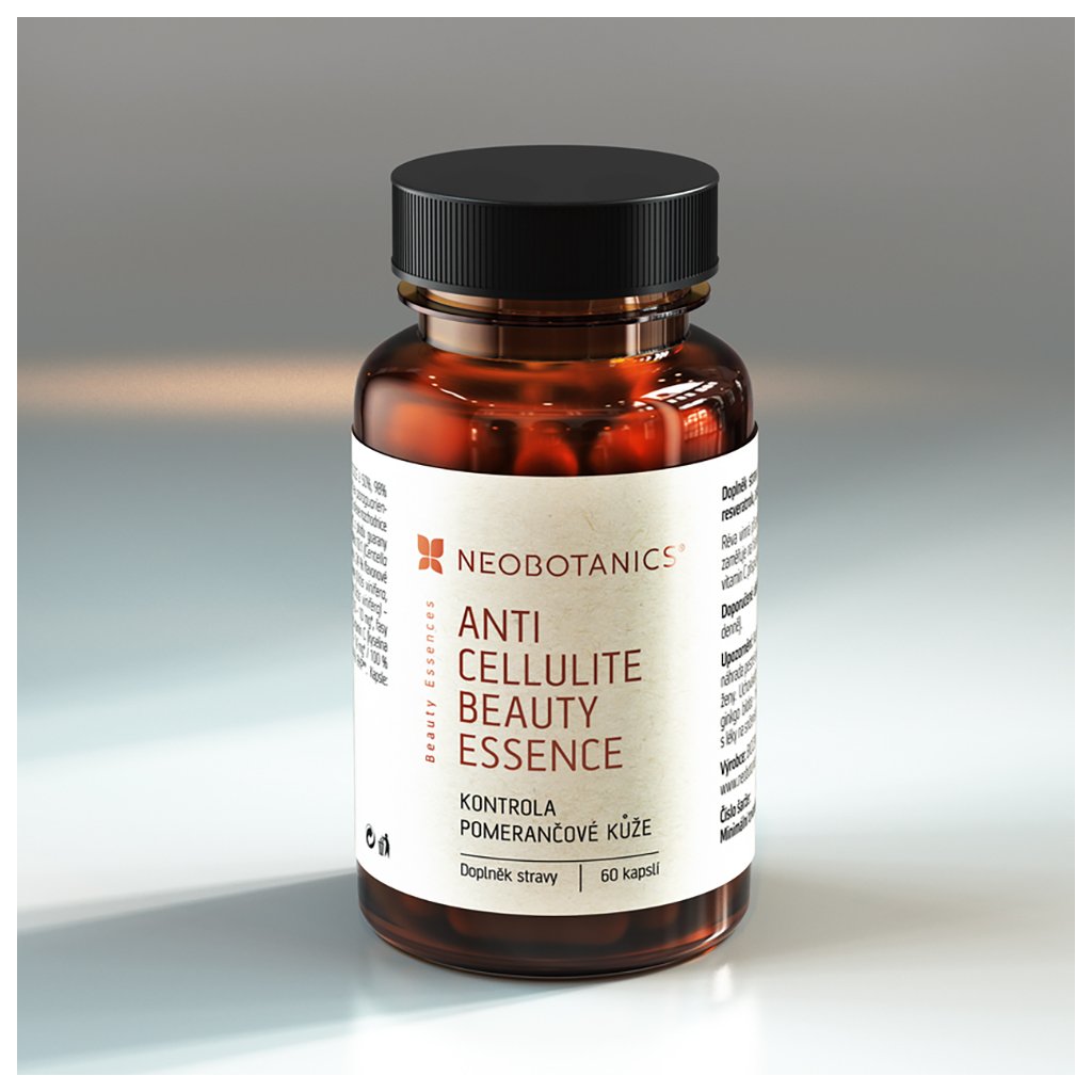 Anti Cellulite Beauty Essence je doplněk stravy, který se zaměřuje na hlavní příčiny celulitidy a přispívá ke zdravému a hladkému vzhledu pokožky. Díky kombinaci rostlinných extraktů, koenzymu Q10, resveratrolu, astaxanthinu a vitaminů napomáhá tělu efektivně bojovat s projevy pomerančové kůže.