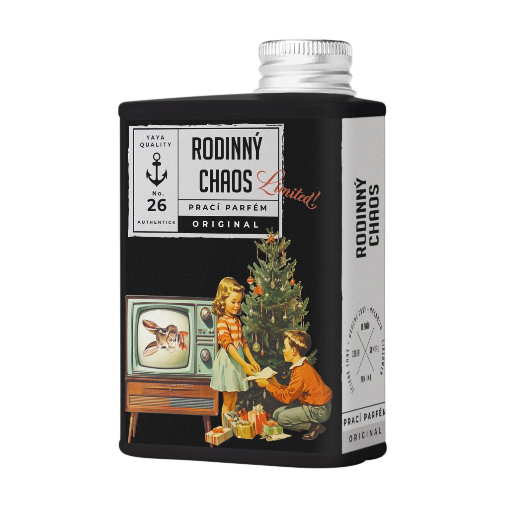 RODINNÝ CHAOS je limitovaná vánoční vůně, která obsahuje speciálně namíchanou kombinaci přírodních silic, jako je pivoňka, švestka, broskev, fialka, růže, limetka, bergamot, mech, mořská tráva, jasmín, růže, cedrové dřevo, orchidej, magnolie, vanilka pravá, santalové dřevo