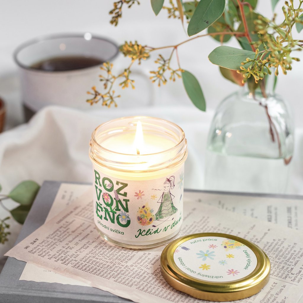 Svíčka neobsahuje ani kapku palmového oleje, živočišných látek nebo syntetických ingrediencí. Ve srovnání s parafínovými hoří až o polovinu déle (až 25 hodin), nešíří kolem sebe škodlivé látky a je 100% biologicky odbouratelná. V Rozvoněno věří v upcyklaci - často využívají již použité skleničky, které oblékají do fešáckých kabátků, a vše uzpůsobují tomu, aby dokonale posloužily i po vyhoření svíčky.