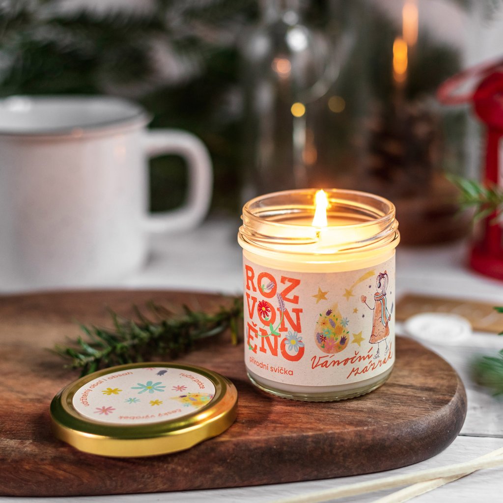 Stýská se vám po vůni čerstvě upečených perníčků? Už nemusí! Vonná svíce s éterickými oleji z hřebíčku, skořice, badyánu a anýzu umí vánoční atmosféru vykouzit natotata. Je ručně vyrobená, 100% přírodní, vegan a nenajdete v ní žádné syntetické složky. Pyšní se kokosovo-sójovým voskem, knotem ze 100% bavlny a svojí intenzitou spadá do kategorie 2, určené pro středně silná aromata. Ve srovnání s parafínovými svíčkami hoří až o polovinu déle (až 25 hodin), nešíří kolem sebe škodlivé látky a je 100% biologicky odbouratelná. V Rozvoněno věří v upcyklaci - často využívají již použité skleničky, které oblékají do fešáckých kabátků, a vše uzpůsobují tomu, aby krásně posloužily i po vyhoření svíčky.