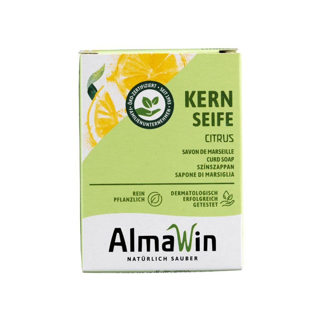 Rostlinné jádrové mýdlo ALMAWIN je šetrné k pokožce a pro příjemný pocit je lehce navoněné přírodní citronovou vůní. Díky svému složení je výborné jak na péči o pokožku, tak i na praní prádla – tak jak to znaly naše babičky.