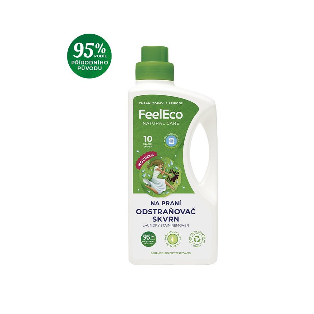 FeelEco Odstraňovač skvrn na praní obsahuje 95% podíl přírodního původu a je výjimečně účinný, ale zároveň šetrný k prádlu i ke zdraví. Prostředek je ideální pro rozsáhlejší skvrny od různých potravin, mastnoty, kosmetiky, bláta a trávy. Prostředek je lehce parfémovaný, vhodný pro bílé i barevné prádlo, zabalen do plně recyklovatelného obalu.