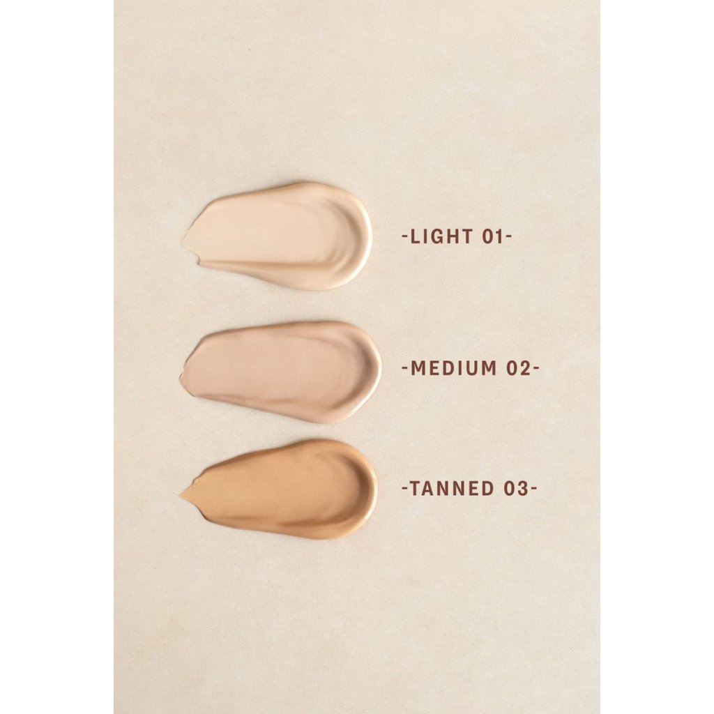 Vhodný je pro všechny typy pleti včetně citlivé, podle barevného tónu si můžete zvolit hned ze 3 odstínů - Light, Medium a Tanned. Krém se pyšní certifikáty NaTrue a Vegan Society - neobsahuje tedy žádné živočišné látky, silikony, minerální oleje či mikroplasty a je dermatologicky testovaný. Díky obsahu BIO aloe very, rakytníku, vitaminu E či skvalanu bude pleť hydratovaná, zklidněná a chráněná před antioxidanty.