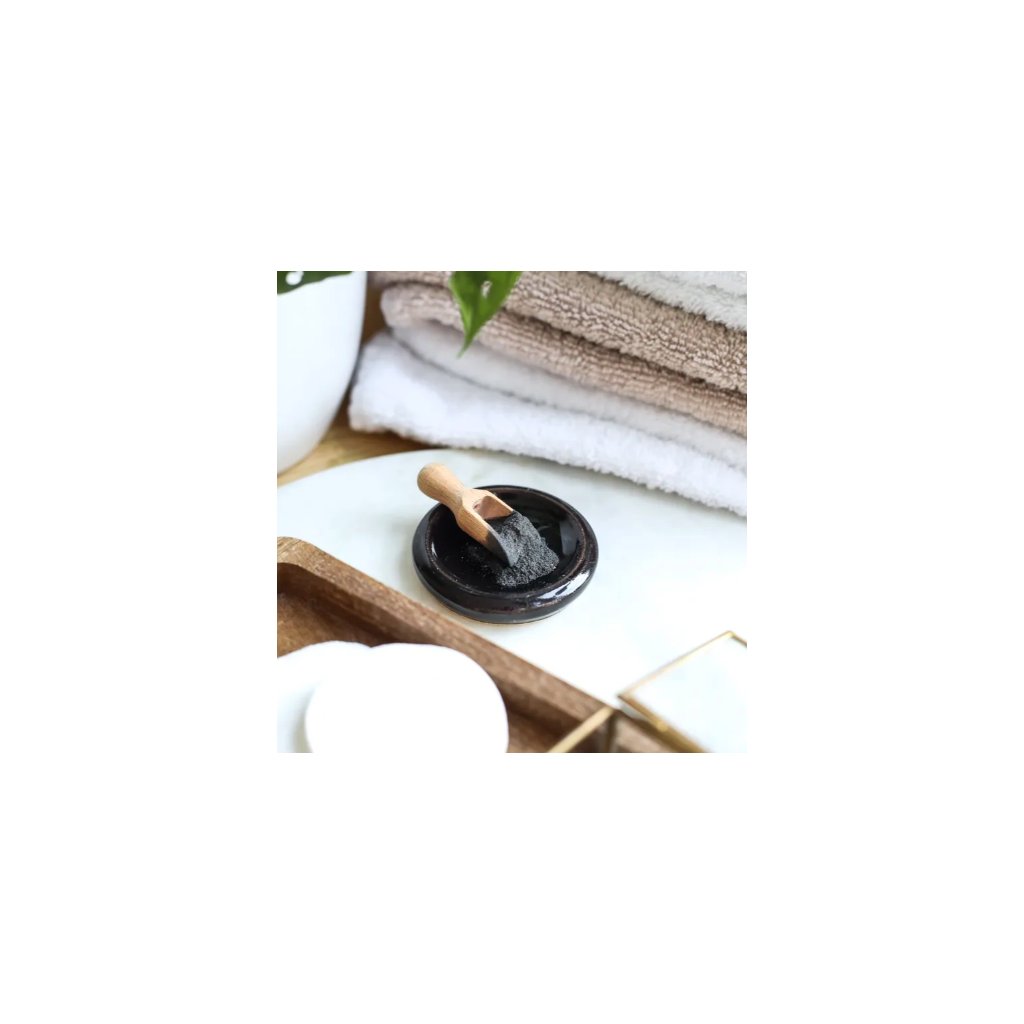 Černé aktivní bambusové uhlí pokožku hloubkově čistí a odstraňuje přebytečný maz a dalších nečistot. Kaolin neboli Bílý jíl na sebe váže nečistoty a maz, efektivně čistí póry a zanechává pleť na dotek hedvábně jemnou. Prášek z moringy je znám pro své antibakteriální vlastnosti, které pomáhají tlumit záněty vyvolané bakteriemi, které nakonec vedou k tvorbě pupínků. Při lokální aplikaci podporuje bleskovou obnovu kožních buněk, čímž pomáhá omezit vyrážky a pigmentové skvrny a vyžehlit jemné vrásky. Kopřivový prášek má také antibakteriálními účinky, zmírňuje projevy kožních problémů, nepříjemného svědění a to vše díky obsahu histaminu, chlorofylu a železa.