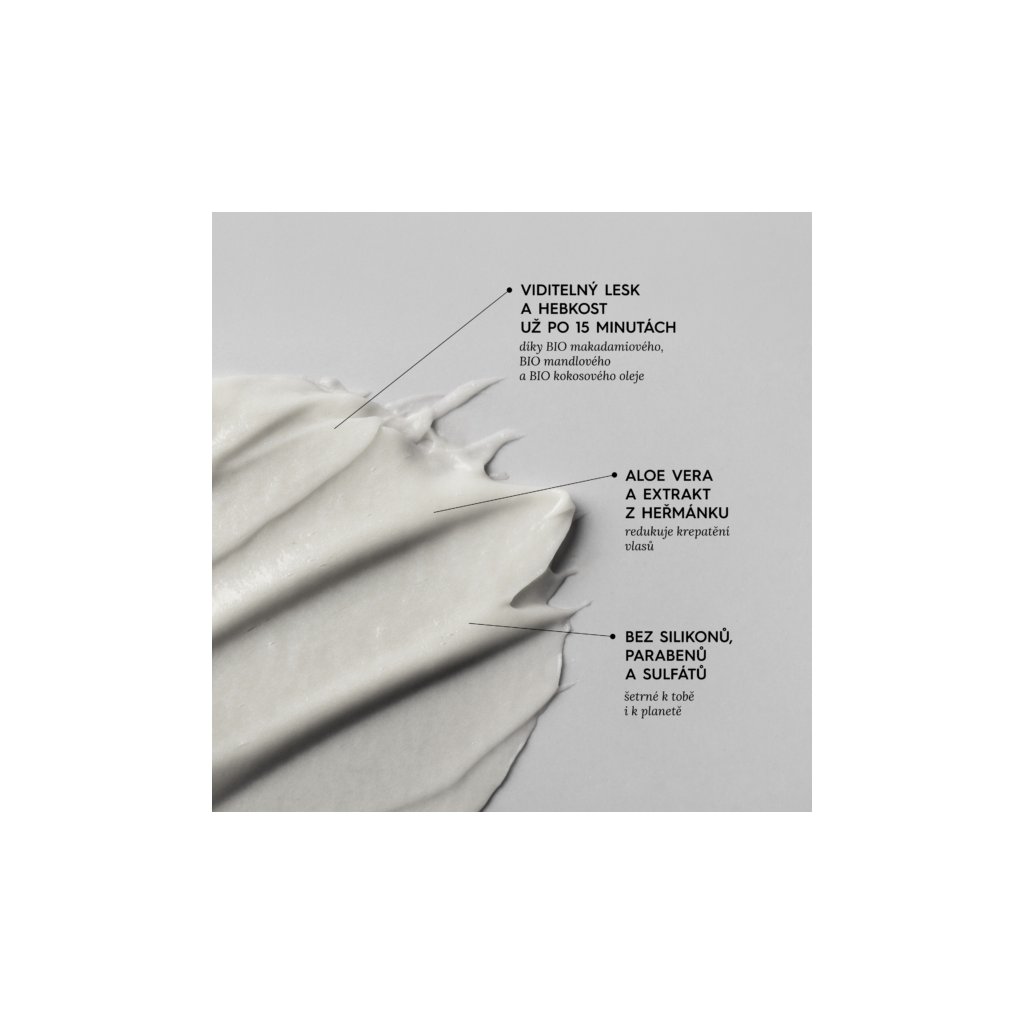 Vyživující, 15 minutová maska pro suché, poškozené a vlnité vlasy. Při pravidelném používání dokonale vyhladí.
