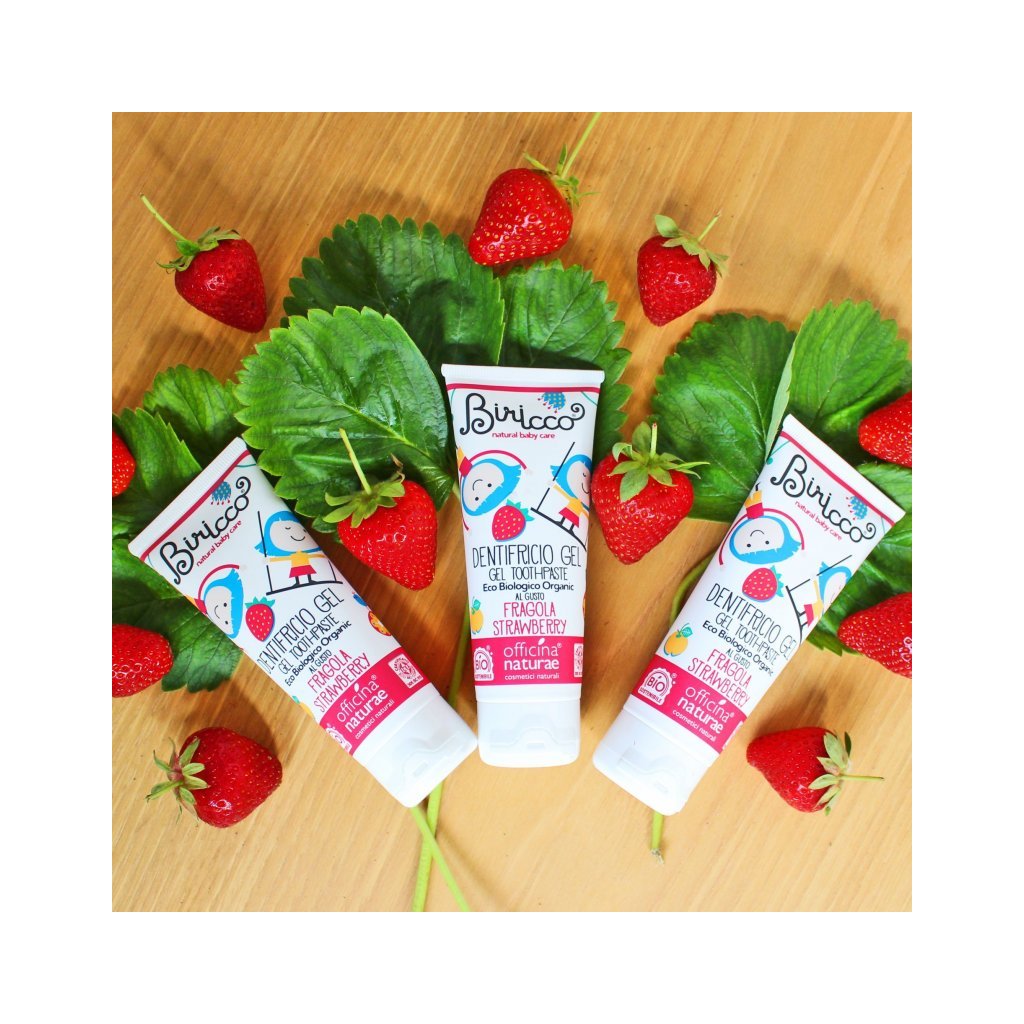 Jemná gelová pasta, kterou si děti ihned zamilují :-) Chutná po blíbených jahůdkách a citlivé dětské zoubky a dásně čistí důkladně, přitom šetrně díky jemné abrazivitě. V receptuře chybí fluorid a jakékoli dráždivé látky, vyhovuje proto i prvním mléčným perličkám. Ty očistí od zbytků jídla, oxid křemičitý podpoří zubní sklovinu a společně s přírodními cukry přirozeně zamezí vzniku kazů.