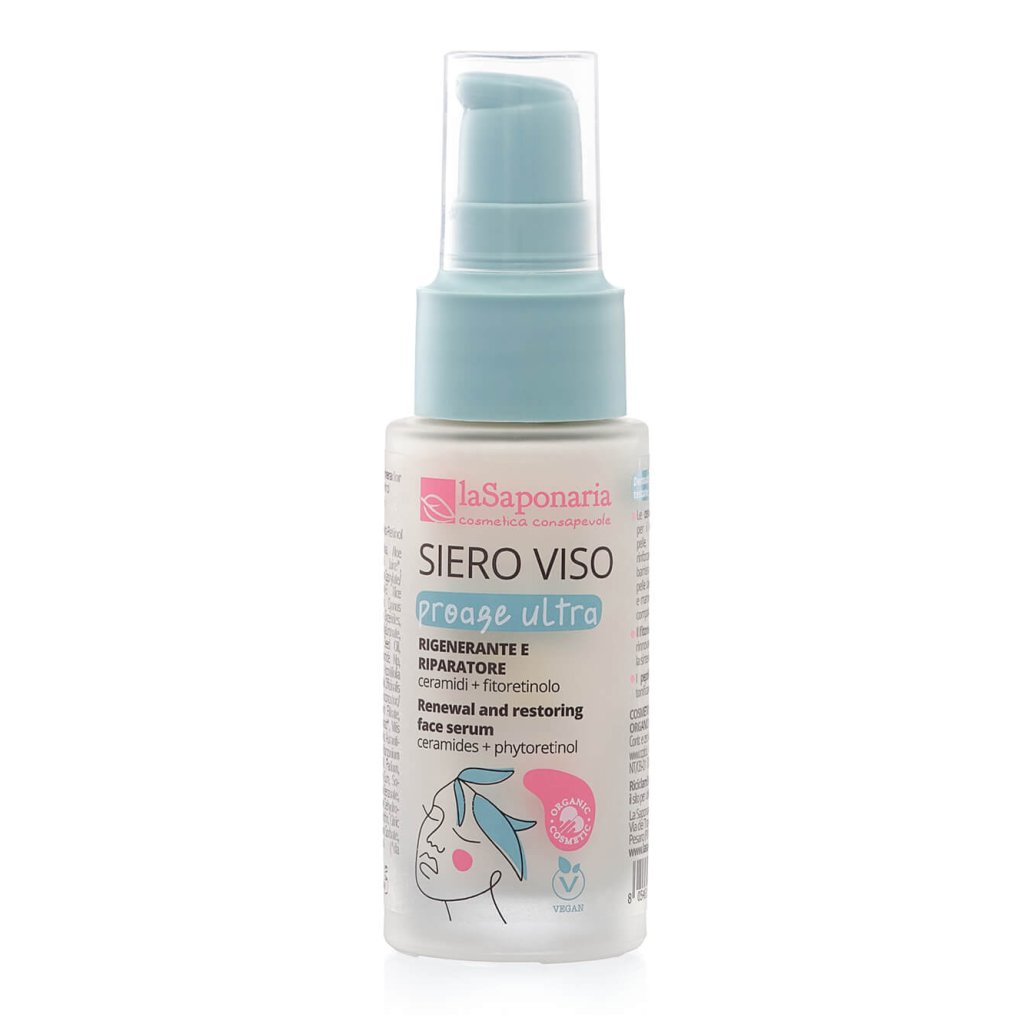 Toto pleťové sérum z anti-aging řady od italské laSaponarie je určené pro všechny typy zralé pleti, včetně té senzitivní. Je plné účinných látek proti stárnutí pleti a jeho přírodní složky obdržely certifikát o organickém původu. Klíčovou roli v tomto séru hrají cenné ceramidy, které obnovují kožní bariéru a zadržují hydrataci uvnitř pleťových buněk. Další důležitou složkou je i fytoretinol, jež má regenerační a vypínací účinek a pak také peptidy, které rozjasňují a tonizují pleť a ta je pak více sjednocená a kompaktní. Sérum bylo dermatologicky testováno na citlivé pleti.