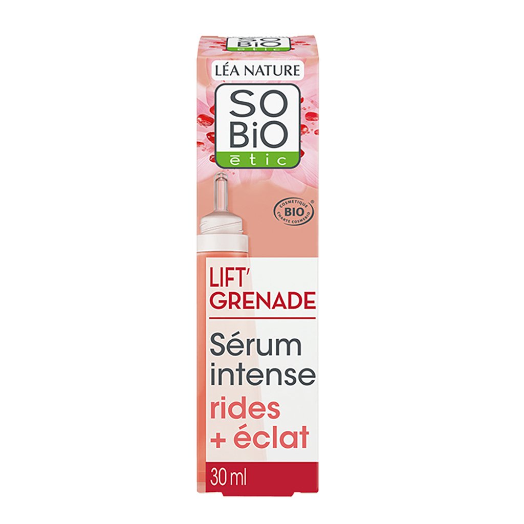SO’BiO étic Lift'Grenade BIO sérum proti vráskám přináší vaší pleti intenzivní péči inspirovanou přírodou. Jeho jedinečná receptura s organickým extraktem z granátového jablka, rostlinnou alternativou retinolu a kyselinou hyaluronovou dodává tváři viditelně svěžejší vzhled a jemně redukuje známky stárnutí. Složení vyniká 99 % přírodních ingrediencí, je bez silikonů a má certifikaci Ecocert Cosmos Organic. Aplikujte ráno či večer na vyčištěnou pleť před nanesením vašeho běžného krému. Dopřejte své pleti přirozeně jemnější a rozzářenější vzhled.