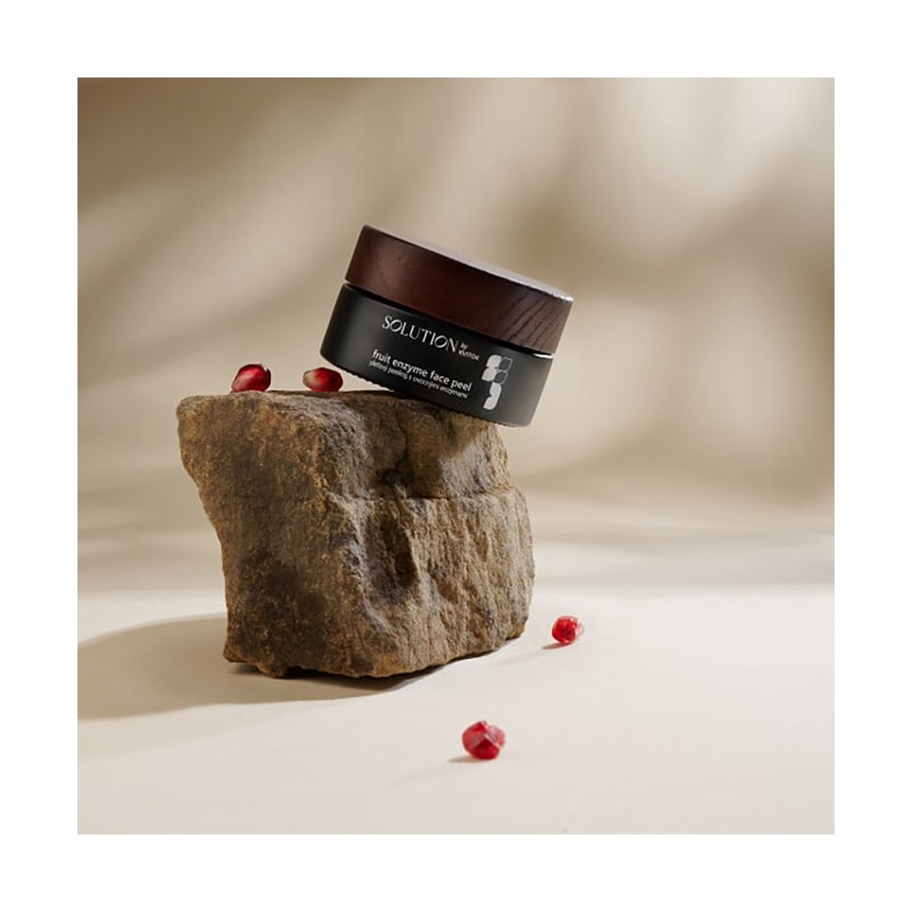 Účinnou složkou pleťového peelingu s ovocnými enzymy z kolekce Solution by Kvitok® jsou fermentované ovocné enzymy z dýně a granátového jablka, které velmi jemně a efektivně odstraňují z pokožky odumřelé buňky a nečistoty.