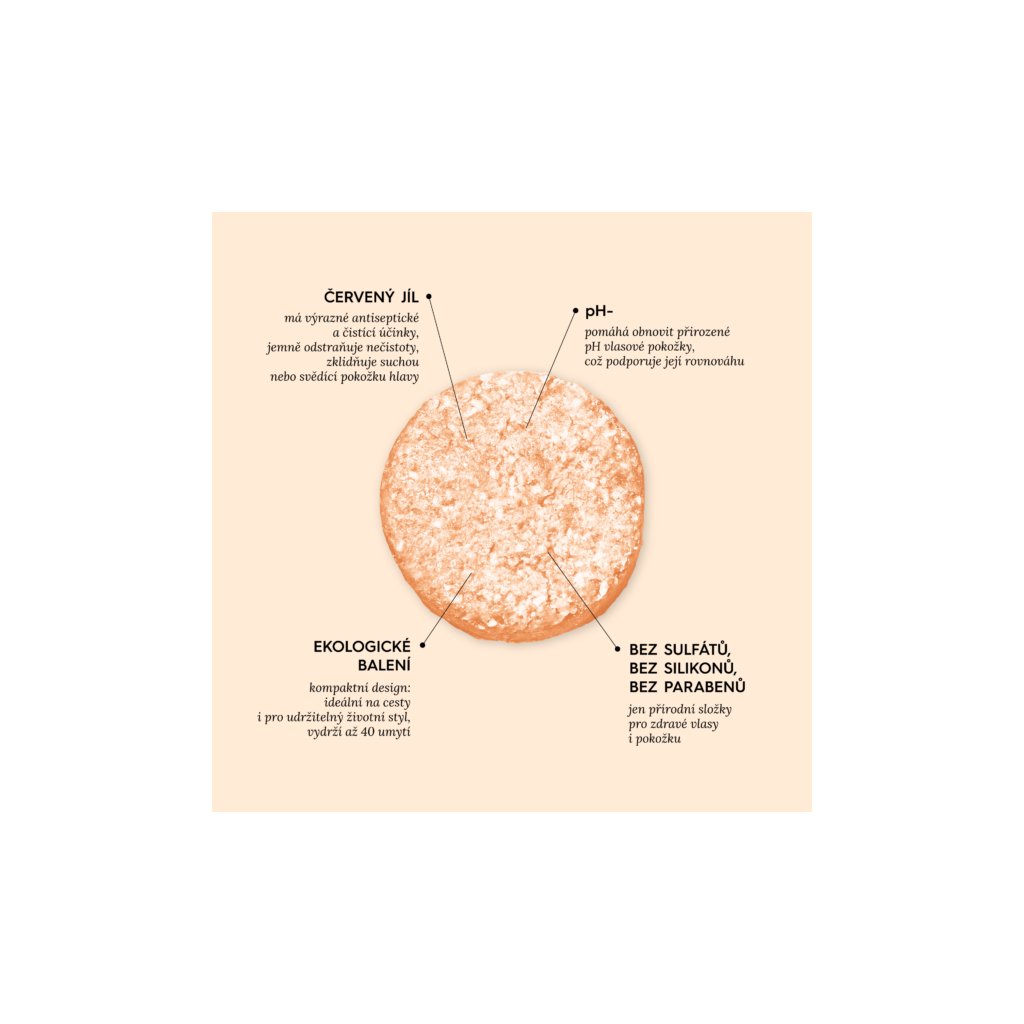 - Čistící síla červeného jílu: Má antiseptické a detoxikační účinky – ideální pro podrážděnou, suchou nebo svědící pokožku hlavy.