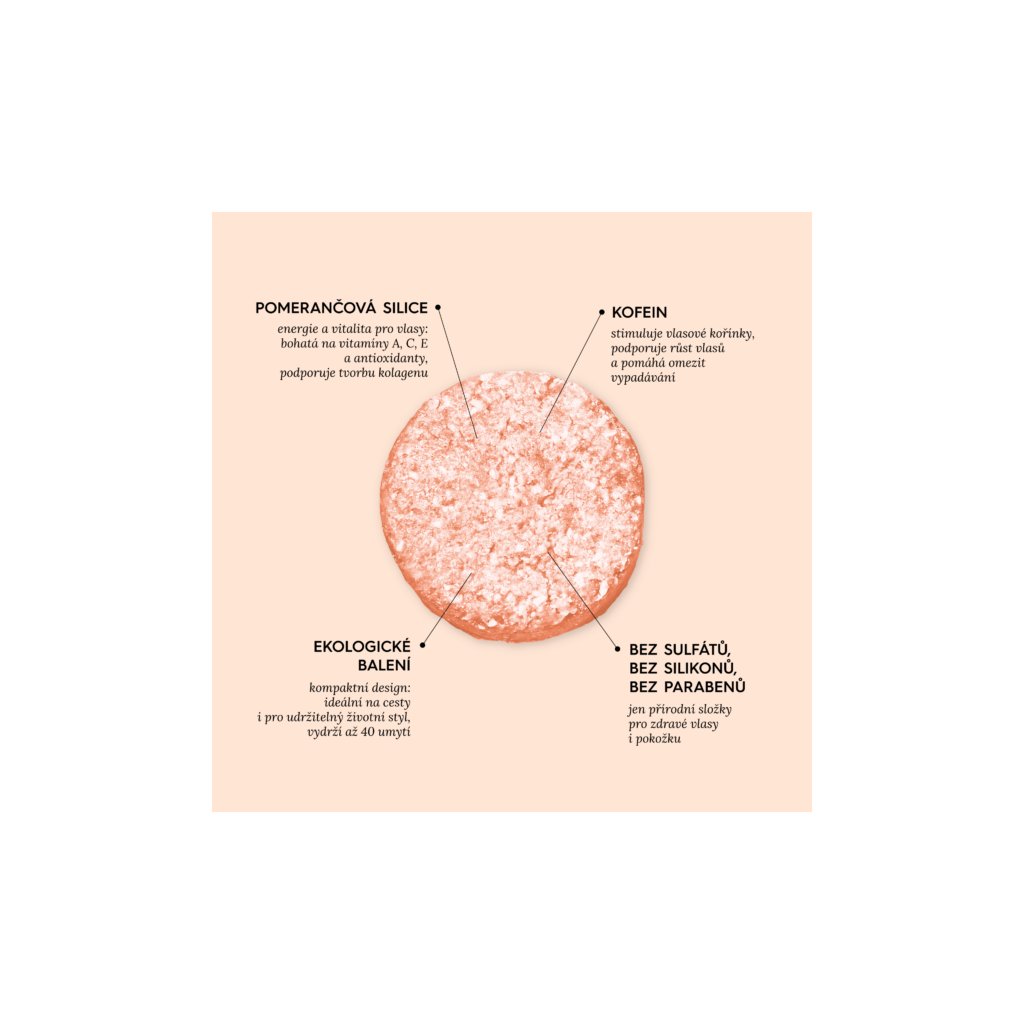 - Svěží vůně: Pomerančová silice provoní vlasy sladce citrusovou vůní.