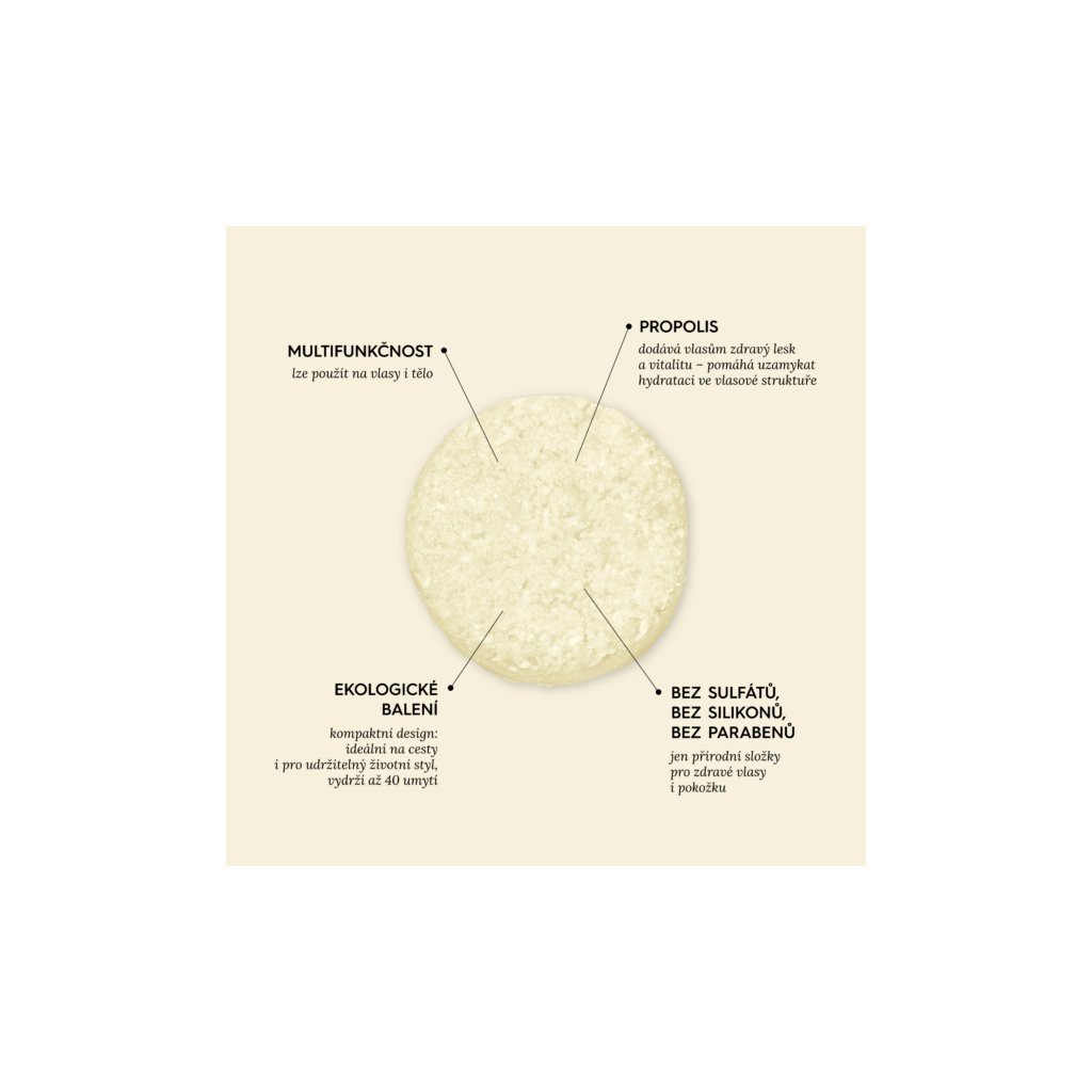 - Zklidnění a výživa: Propolis posiluje vlasy, dodává jim lesk a podporuje vitalitu.