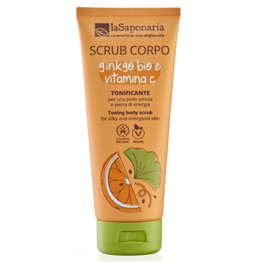 Tělový peeling laSaponaria s BIO ginkgo bilobou a vitamínem C má jemnou krémovou konzistenci, která lehce odstraní odumřelé buňky a zanechá pokožku hedvábně jemnou a zářivě svěží. Příjemně povzbudivá, citrusová vůně potěší smysly a dodá každému dni svěžest a energii. Jeho přírodní složení je vhodné i pro vegany a pyšní se certifikací BDIH Cosmos Natural.