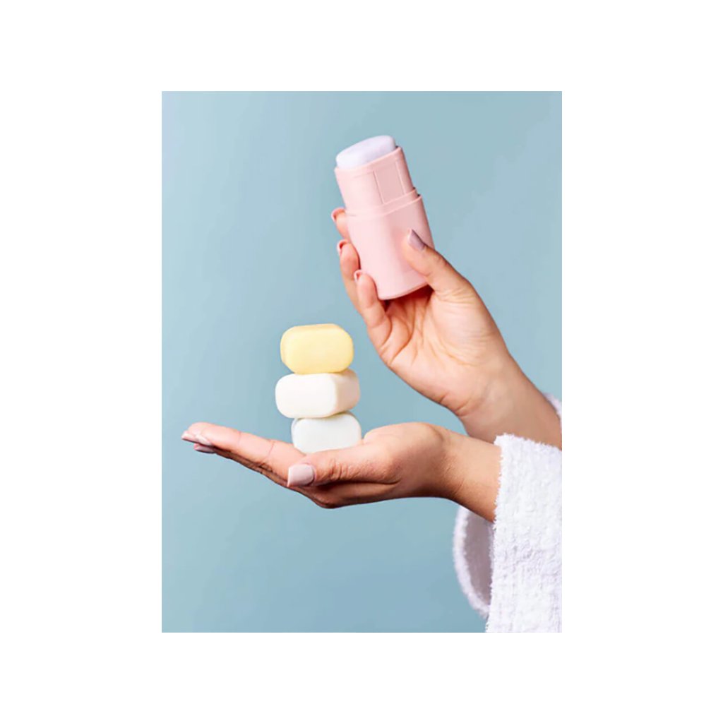 - Kostičku tuhého deodorantu jednoduše vložte do vrchní části aplikátoru.