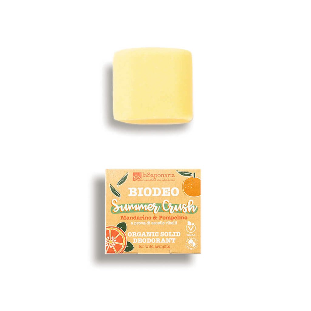 Přivoňte si...co cítíte? Ano, exotická dovolená v Toskánsku, kde to voní čerstvými pomeranči, mandarinkou a svěžím mořským vánkem. Božíííííí. Tak přesně takovou malou dovolenou ukryla italská laSaponaria do kostičky tuhého deodorantu. Exotickou veselou vůni doplňují účinné látky s regeneračními a revitalizačními účinky – třeba mangové máslo, mrkev a pečující bambucké máslo. Deodorant neobsahuje ani špetku hliníkových solí a ani kapku alkoholu, přesto je natuty funkční.
