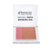 Nádherný sluncem rozzářený Bronzer Fresh Bronzing duo, který si zamilujete pro jeho teplé hnědé a růžové tóny. Obohacený regeneračním makadamiovým olejem, organickým ricinovým olejem, které chrání pokožku. A slunečnicovým olejem chránícím buňky, vám dodají krásný "efekt slunečního svitu". Vaše pleť vypadá živě, dokonale svěží a jako by ji políbilo slunce.