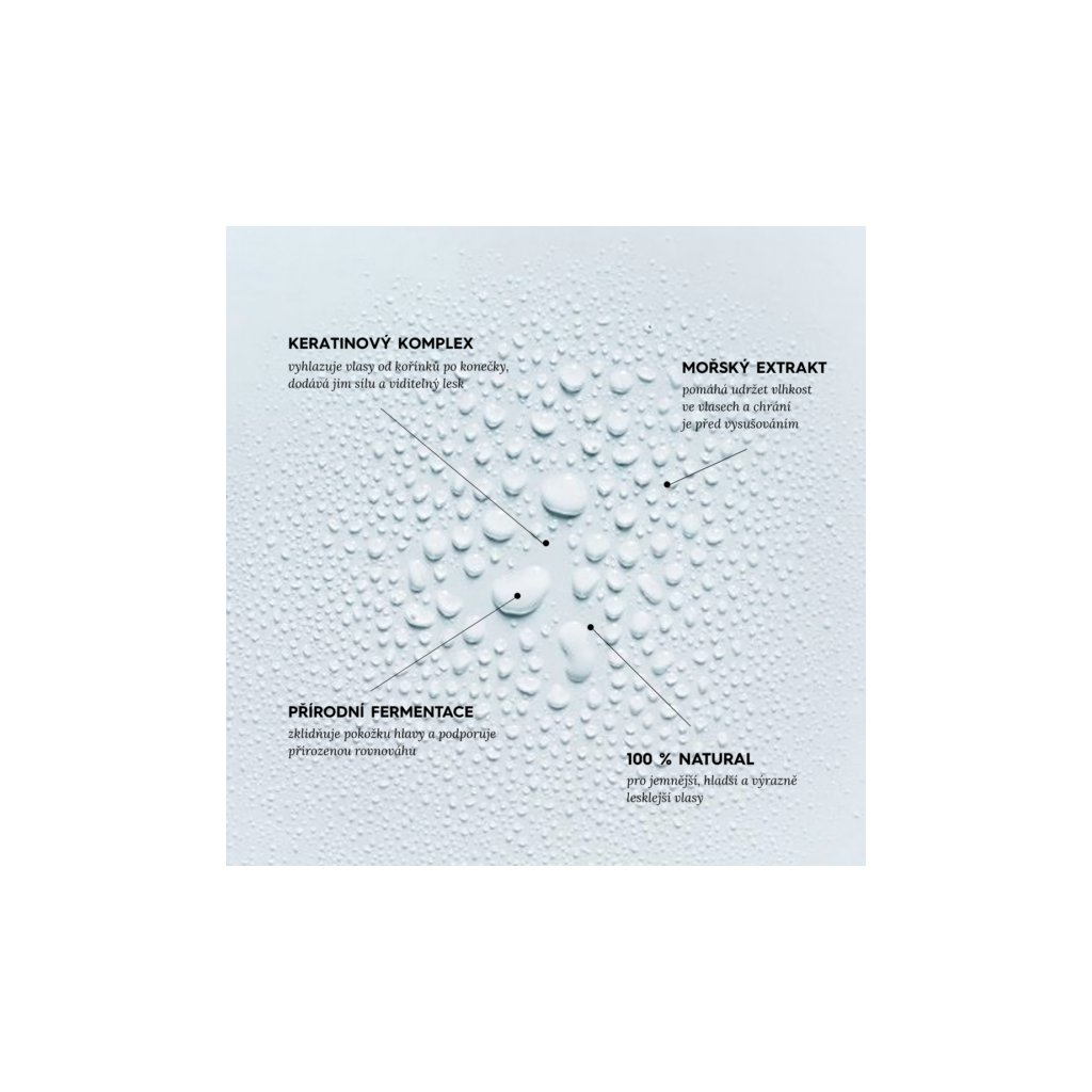 - Hydratace a ochrana: Kyselina mléčná a extrakt z mořských řas podporují hydrataci, hebkost a přirozenou odolnost vlasů bez zatížení.