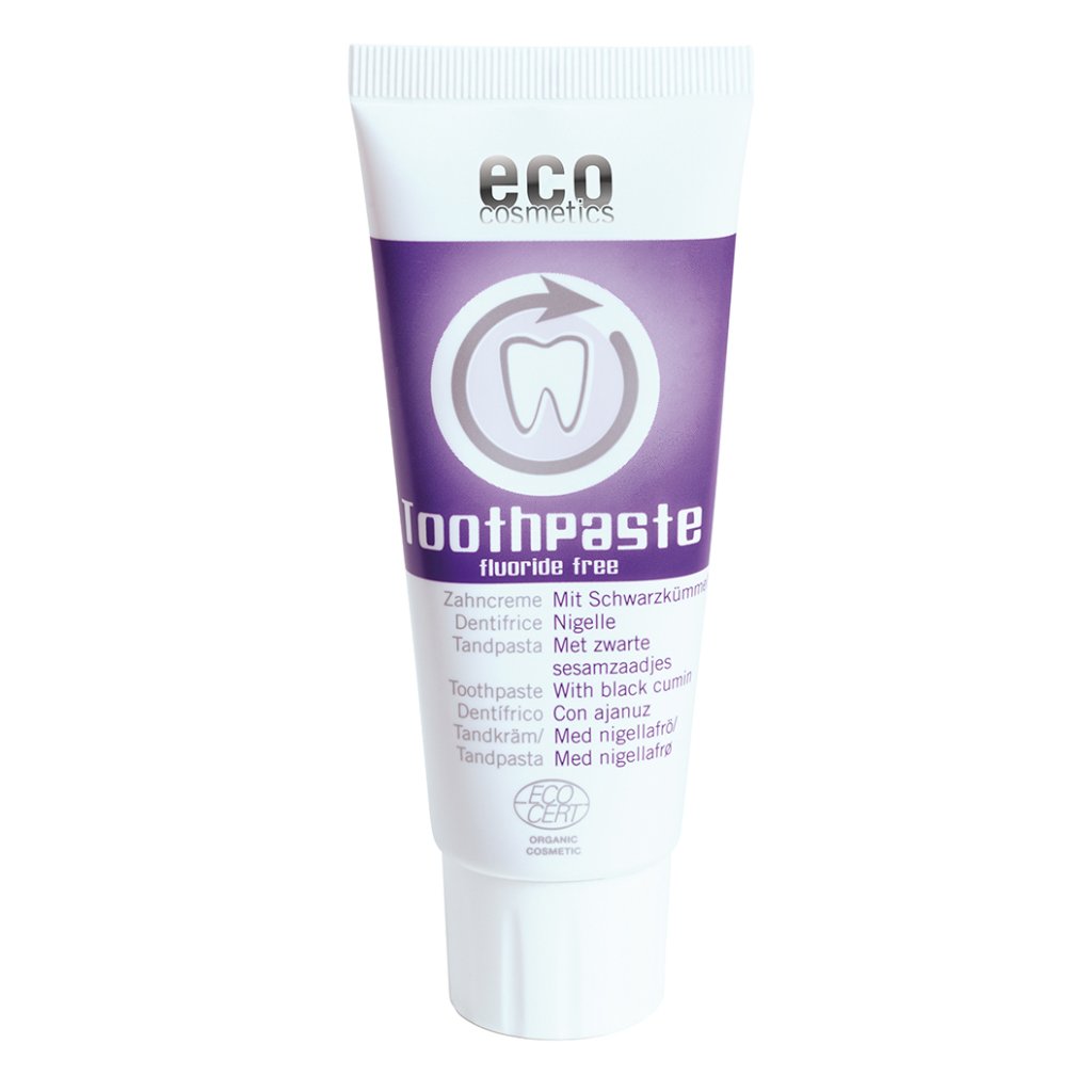 Tato 100% přírodní pasta od Eco Cosmetics chutná nesmírně zajímavě a svěže. Pokud už máte dost obvyklé máty, tak vyzkoušejte jedinečnou chuť plynoucí z BIO éterického oleje černuchy (neboli černého kmínu), extraktu z myrhy a špetky mořské soli. Složení pasty pomáhá působit proti zubnímu kazu a paradentóze. Zachovává zdravou a potřebnou mikroflóru v ústní dutině.
