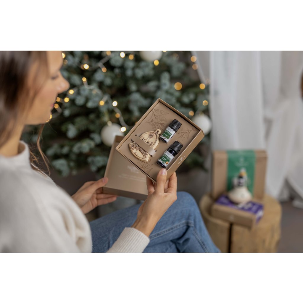 Dárková mini sada pro milovníky aromaterapie vykouzlí hřejivou zimní atmosféru a vnese do prostoru harmonii a dobrou náladu. Vůně éterických olejů skořice a pomeranče se pro své účinky hodí do zimního období a lze je mezi sebou libovolně míchat. Podle aktuálních pocitů jednou nechat zaznít více tóny koření, jindy šťavnatých citrusů nebo se nechat unést jejich vyváženou kompozicí. Nakapané na přiložené keramické destičce přinášejí nejen krásné přírodní vůně, ale také pročistí vzduch, podpoří dobré trávení a prohřívají během chladných zimních dnů.