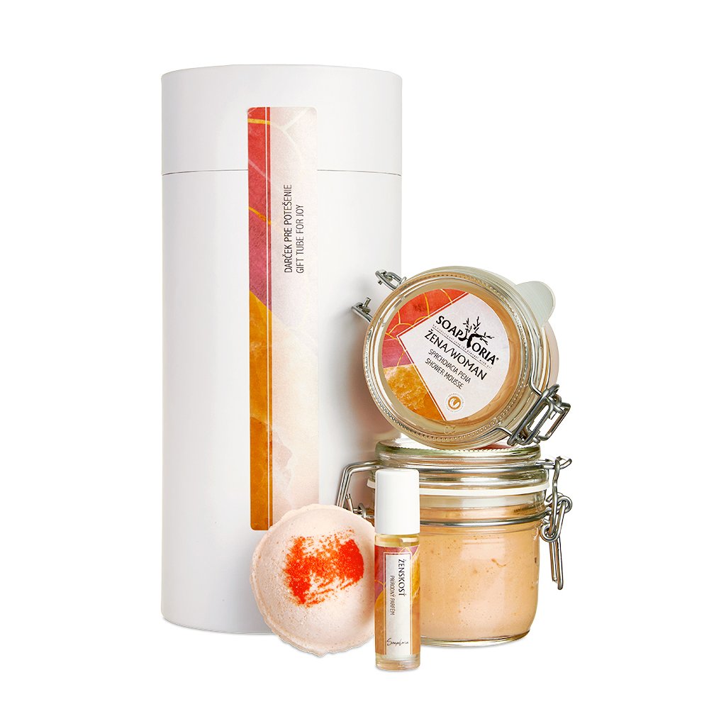 Dárkový set s afrodiziakální ovocně-květinovou, vznešeně nasládlou ženskou vůní. Vrchní tóny žlutého melounu a malin jsou krásně propojeny s něžnou květinovou esencí jasmínu a jabloňových květů, doplněné s hřejivou vanilkou a nevinnými kosatci. Ideální dárek pro zpříjemnění každodenních rituálů a rozmazlování těla, duše i mysli.
