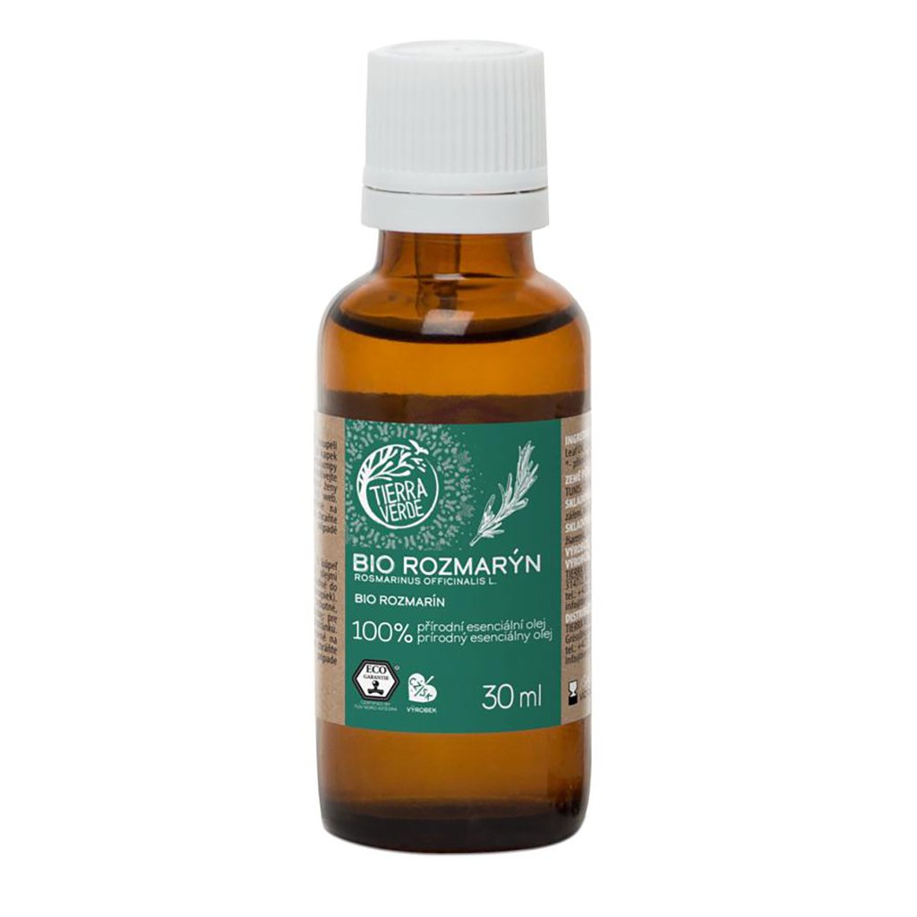 Kořeněná a silně povzbuzující vůně rozmarýnu působí jako životabudič. Zažene únavu, uleví při nachlazení, podpoří koncentraci i paměť. Podporuje také prokrvení organizmu, nezdráhejte se ho proto kápnout i do koupele nebo do masážního oleje. Esenciální olej z této úžasné byliny povzbudí při duševní práci, v kanceláři, doma při učení nebo i při dlouhé jízdě autem. V Tierra Verde jej připravili šetrně, v BIO kvalitě a s certifikátem Ecogarantie.