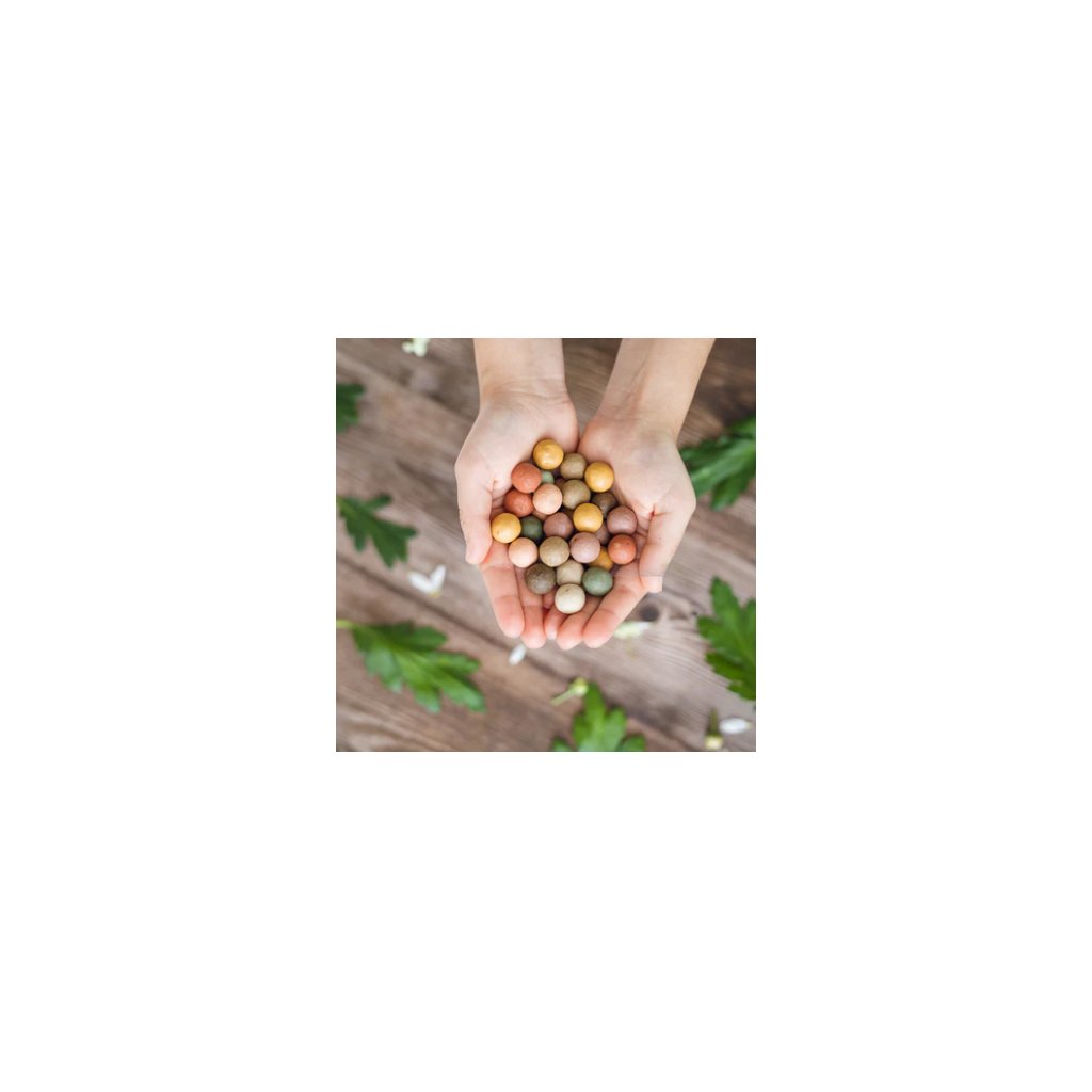 Přírodní barevné pigmenty: oblékají semínkové bomby do barevných kabátků. Barevný výběr kuliček do dárkových balení je čistě náhodný.